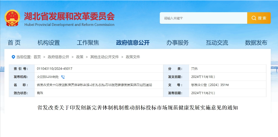 近日,湖北省發(fā)改委印發(fā)《關(guān)于創(chuàng)新完善體制機(jī)制推動(dòng)招標(biāo)投標(biāo)市場(chǎng)規(guī)范健康發(fā)展的實(shí)施意見》(鄂發(fā)改公管〔2024〕號(hào),以下簡(jiǎn)稱《實(shí)施意見》),深化招標(biāo)投標(biāo)領(lǐng)域改革創(chuàng)新重點(diǎn)任務(wù)和具體...
