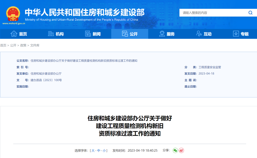 4月23日,住建部官網(wǎng)發(fā)布了對《建設(shè)工程質(zhì)量檢測機(jī)構(gòu)資質(zhì)標(biāo)準(zhǔn)》的解讀(文末附全文),《資質(zhì)標(biāo)準(zhǔn)》主要修訂了以下內(nèi)容:
