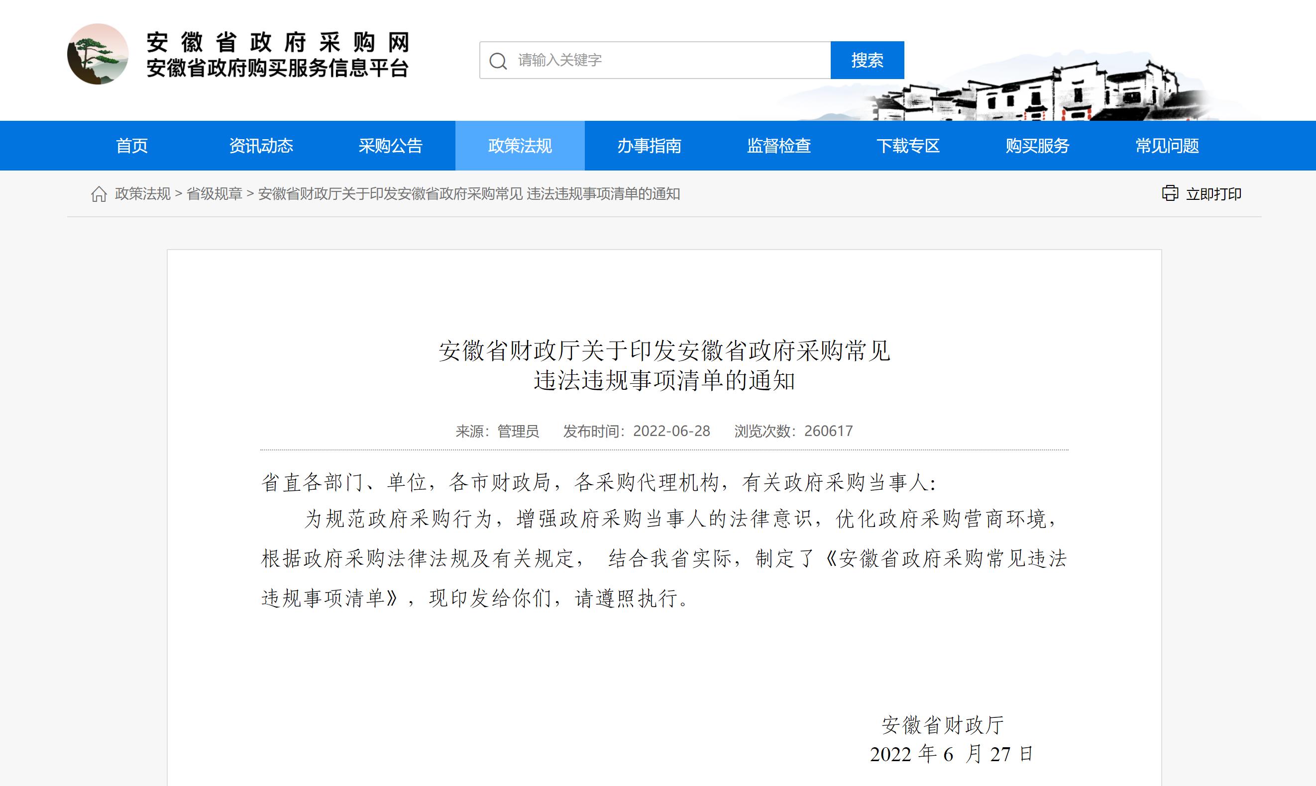 安徽|印發(fā)政府采購常見違法違規(guī)事項(xiàng)...