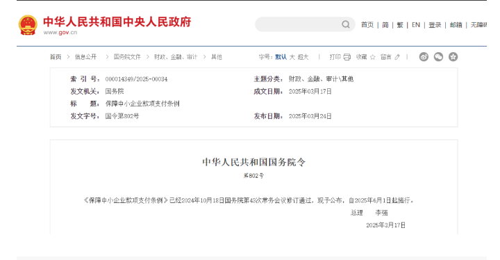保障中小企業(yè)款項(xiàng)支付條例(2020年7月5日中華人民共和國國務(wù)院令第728號公布 2025年3月17日中華人民共和國國務(wù)院令第802號修訂) 第一章 總 則 第一條 為了促進(jìn)機(jī)關(guān)、事...