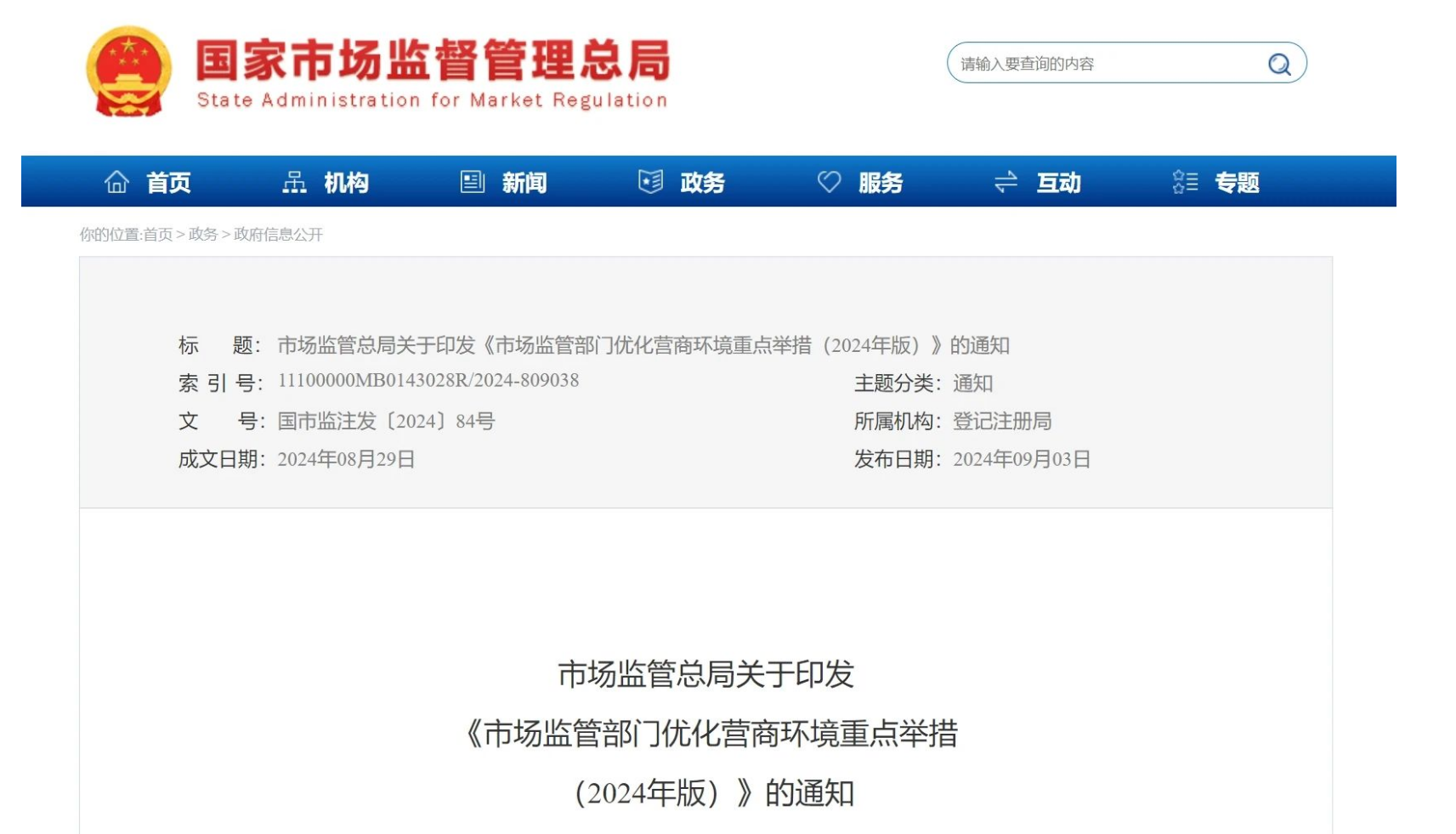 9月3日,市場監(jiān)管總局出臺了《市場監(jiān)管部門優(yōu)化營商環(huán)境重點舉措(2024年版)》?! 〖訌姴块T協(xié)同配合,持續(xù)推動電子營業(yè)執(zhí)照跨區(qū)域、跨部門、跨行業(yè)互通共享應用,拓展電子營...