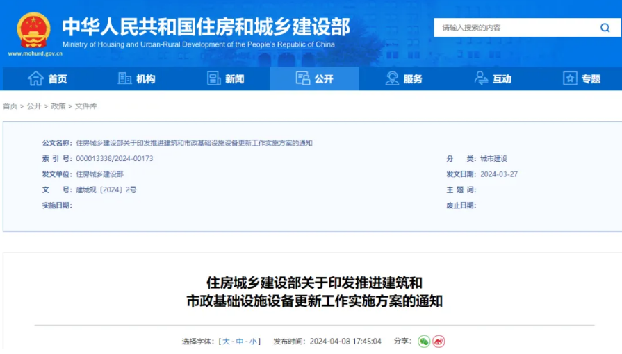 近日,住建部發(fā)布《關(guān)于印發(fā)推進(jìn)建筑和市政基礎(chǔ)設(shè)施設(shè)備更新工作實(shí)施方案的通知》。強(qiáng)調(diào)加快更新淘汰建筑和市政基礎(chǔ)設(shè)施領(lǐng)域老舊高耗能等不達(dá)標(biāo)設(shè)備,并加強(qiáng)相關(guān)企業(yè)技術(shù)改造項(xiàng)目用地、用能等要素保障。并提出10項(xiàng)重點(diǎn)任...