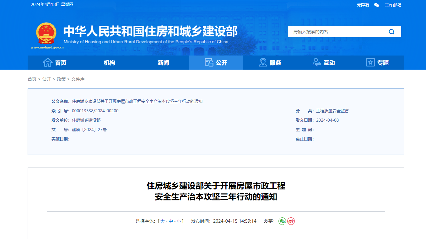 近日,住建部發(fā)布《關(guān)于開(kāi)展房屋市政工程安全生產(chǎn)治本攻堅(jiān)三年行動(dòng)的通知》。提出: “逐企業(yè)、逐項(xiàng)目、逐設(shè)備”檢查在建房屋市政工程!“逐企...
