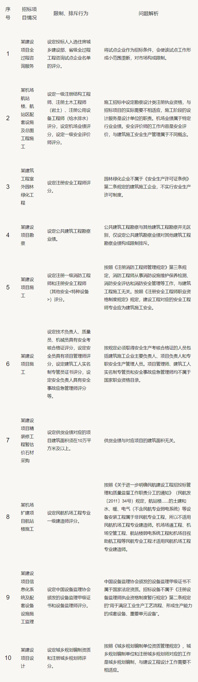 為規(guī)范全省房屋建筑和市政工程招標投標活動,引導招標人、招標代理機構規(guī)范編制招標文件,四川省住建廳每季度公布一批房屋建筑和市政工程招標文件中限制、排斥潛在投標人行為典型事例,供招標人、招標代理機構和監(jiān)督部門對照檢查,以避免出現(xiàn)類似情形。此次為公布的第一批典型事例。