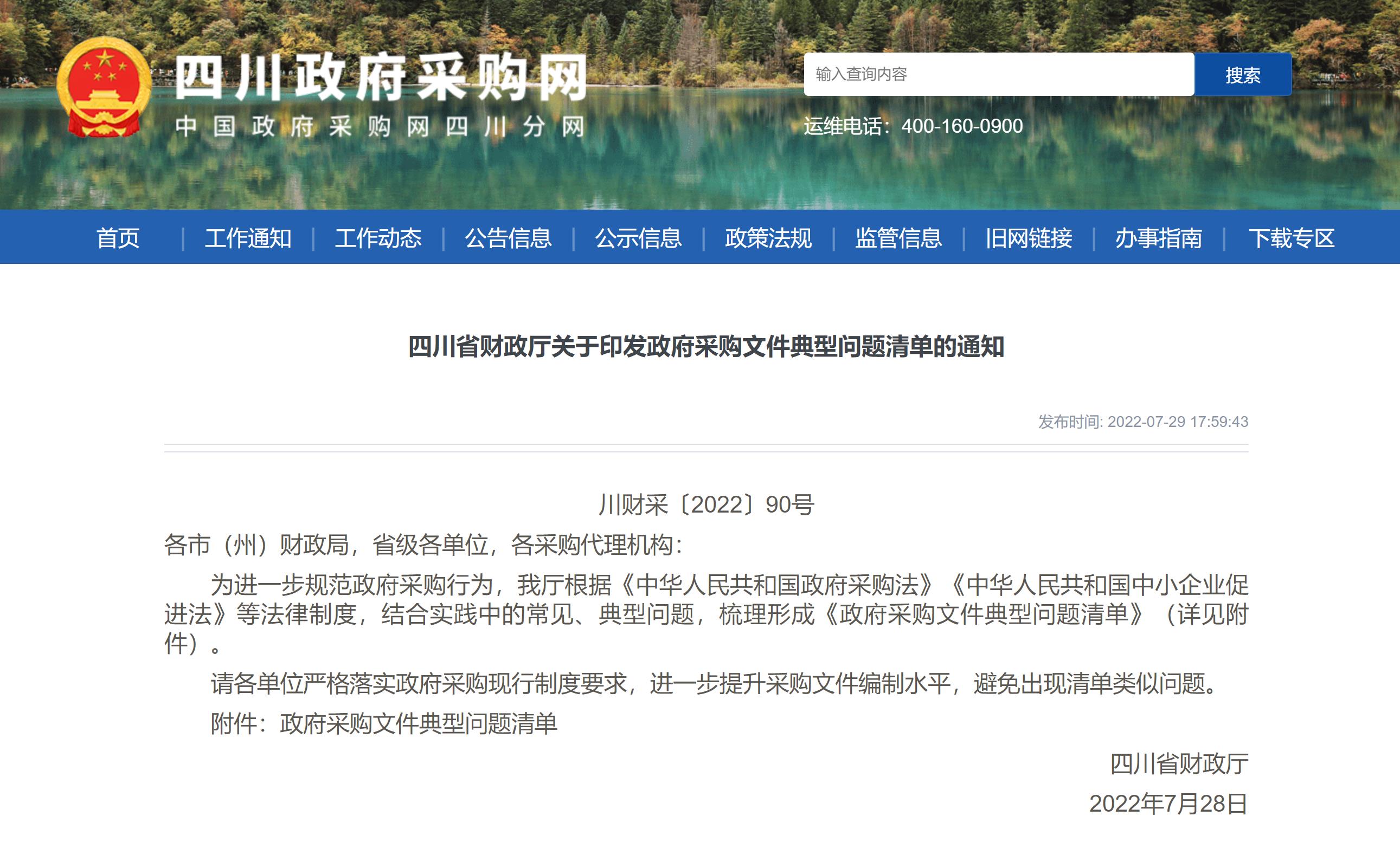 近日,四川省印發(fā)《政府采購文件典型問題清單》(以下簡稱《清單》),要求各單位嚴(yán)格落實(shí)政府采購現(xiàn)行制度要求,進(jìn)一步提升采購文件編制水平。