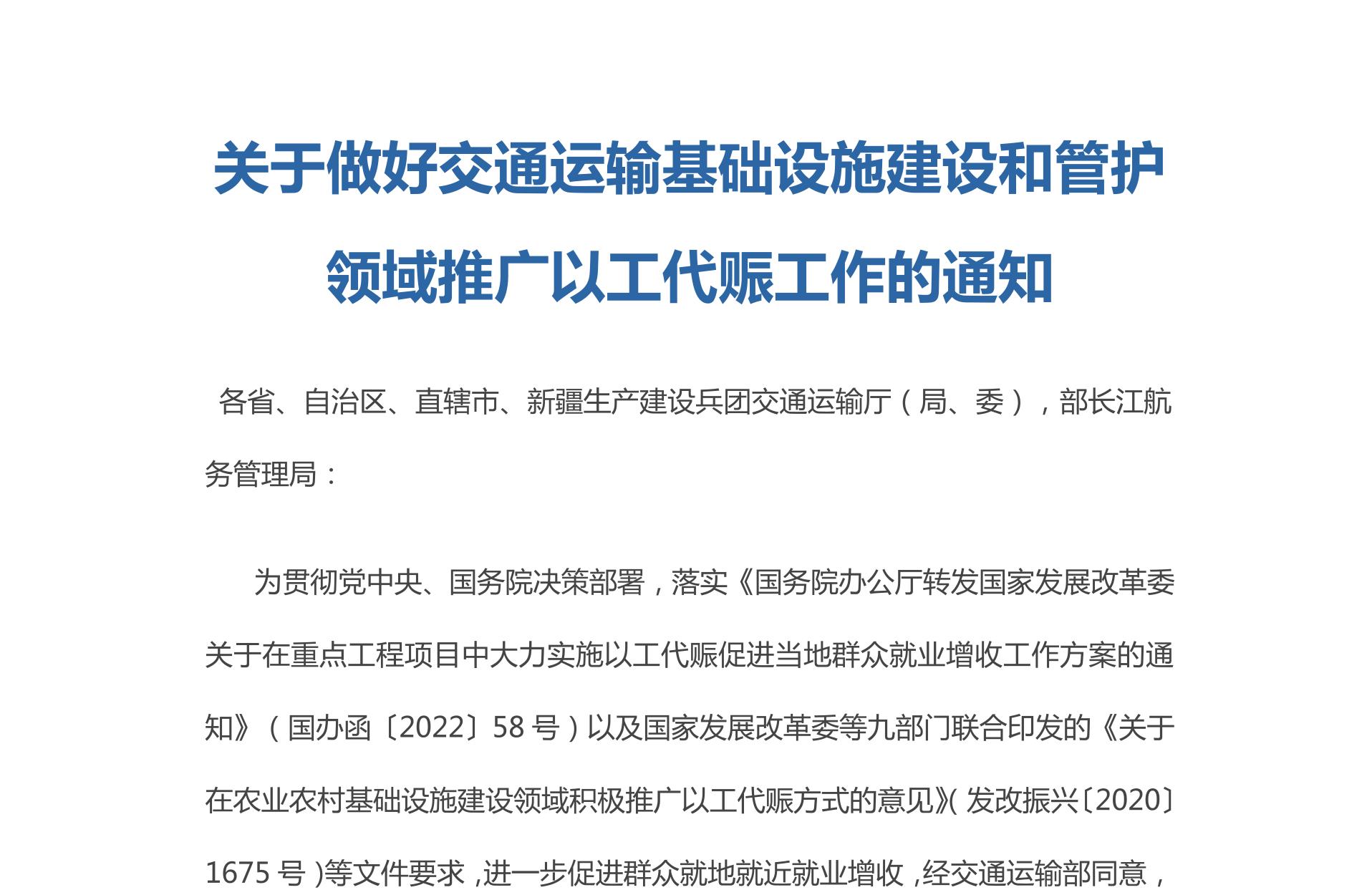 近日,交通運(yùn)輸部辦公廳發(fā)布《關(guān)于做好交通運(yùn)輸基礎(chǔ)設(shè)施建設(shè)和管護(hù)領(lǐng)域推廣以工代賑工作的通知》(以下簡稱《通知》),其中明確緊盯建設(shè)項(xiàng)目招標(biāo)投標(biāo)、項(xiàng)目分包等關(guān)鍵環(huán)節(jié),對于采取以工代賑方式實(shí)施的農(nóng)村交通運(yùn)輸基礎(chǔ)設(shè)施...