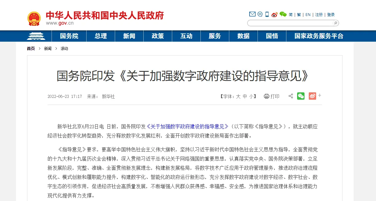 國務(wù)院丨發(fā)布關(guān)于加強數(shù)字政府建設(shè)...