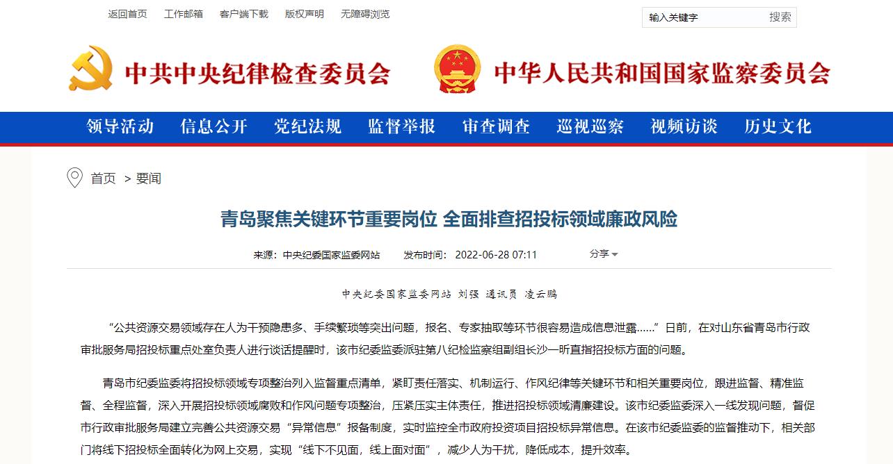“公共資源交易領(lǐng)域存在人為干預(yù)隱患多、手續(xù)繁瑣等突出問題,報名、專家抽取等環(huán)節(jié)很容易造成信息泄露……”日前,在對山東省青島市行政審批服務(wù)局招投標(biāo)重點處室負(fù)責(zé)人進(jìn)行談話提醒時,該市紀(jì)委監(jiān)委派駐第八紀(jì)檢監(jiān)察組副...
