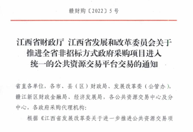 為進(jìn)一步完善政府采購(gòu)監(jiān)管體系,規(guī)范江西省政府采購(gòu)行為。近日,江西省財(cái)政廳聯(lián)合省發(fā)展改革委以贛財(cái)購(gòu)〔2022〕5號(hào)文《關(guān)于推進(jìn)全省非招標(biāo)方式政府采購(gòu)項(xiàng)目進(jìn)入統(tǒng)一的公共資源交易平臺(tái)交易的通知》(以下簡(jiǎn)稱《通知》),對(duì)...